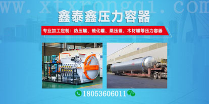 您好,歡迎來到山東鑫泰鑫智能裝備有限公司網(wǎng)站!我們?yōu)槟峁└鞣N規(guī)格的硫化罐、熱壓罐、蒸壓釜、木材罐等壓力容器設(shè)備及服務(wù)。